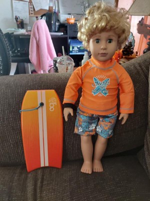 [This review was collected as part of a promotion.] The Sophia's - 18" Doll - Surf Shirt & Floral Print Swim Trunks - Orange is super cute and is great for my grand daughter that is learning how to surf. The fit is a little tight but does it's job on her doll that wears this. I love the bright colors and it's just all around a happy little outfit to brighten any boy/girls day. Super cute and I'd for sure recommend.
