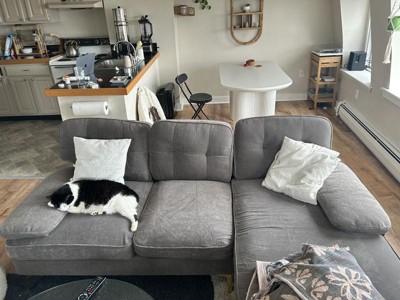 Fantastic addition to my living space. The velvet upholstery is incredibly soft and luxurious, and the sofa's design is both modern and sophisticated. The L-shaped configuration maximizes seating and fits perfectly in my living room. The comfort level is superb, with the foam-filled cushions providing excellent support. The loose backrest and armrests are a great feature, allowing for flexible and personalized comfort. The sofa's sturdy frame and metal legs give it a solid and durable feel. Assembly was straightforward, and the sofa arrived in two convenient packages. The quality of the materials used is impressive, and the design seamlessly integrates with my home decor. This sectional sofa not only adds a touch of elegance to my living room but also provides a cozy and inviting space for relaxation. Overall, I am extremely satisfied with this purchase and would highly recommend it to anyone looking for a high-quality, stylish, and comfortable sofa.