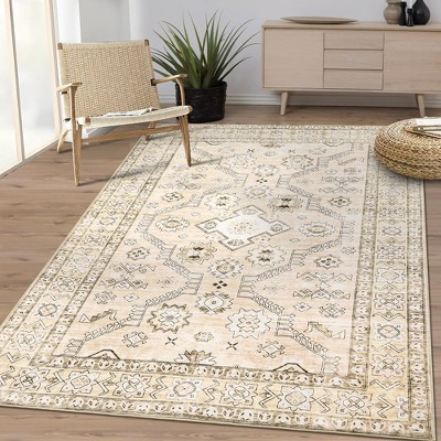 Embracing a timeless traditional style, the rug features a harmonious blend of beige and ivory hues, creating an inviting and warm atmosphere in any room. The intricate pattern displayed in the image reveals classic motifs and ornamental details, reminiscent of age-old artistry.