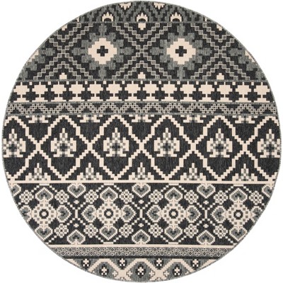 Global GLB206 Power Loomed Indoor/Outdoor Area Rug - Grey/Ivory - 6'7" Round - Safavieh