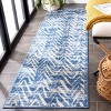 Boasting an enchanting blue hue, the rug features an expressive pattern with a dynamic abstract design that can complement various styles, from the modern urban loft to a more traditional setting. The pattern on the rug presents a series of zigzags and angles that create a lively, rhythmic visual, ideal for adding texture and depth to your floor space.