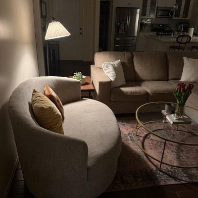 The lamp is shorter and has a smaller lampshade- takes up less real state at the end of couch. Looks nice, gives off good lighting and good price.