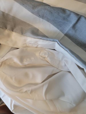 [This review was collected as part of a promotion.] This set is so cute with the little tufts of yarn. The grey is a nice mid grey, not being too warm or too cool in my opinion. It is a nice light weight material and the polyester fibers really help with the wrinkling. I washed the duvet snd cases on the recommended setrings and it came out beautifully. I like the weight of it beacuse it can take a light weight insert for the spring/summer and a heavier one for the fall/winter and not weigh it down too much. All 4 corners do have ties on the inside to keep the insert in place, which is a huge plus! The bottom has buttons that button inward, as most do. I'd say the only miss with this set is that the backing of the duvet and cases has a fabric that is slightly off shade. It's more of an ivory where the top is more of a white. It's not hugely noticeable, but something to keep in mind. Overall, it's a great set!;