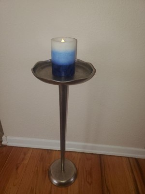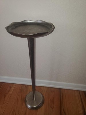 [This review was collected as part of a promotion.] This Kate and Laurel Alessia Modern Decorative Metal Drink Table, 8 x 8 x 22, Stunning Cast Aluminum Pedestal Plant Stand with Rough Texture and Deckled Edge is very easy to assemble. It comes with the base, middle pipe, and table top, very pretty color, nice texture, a little heavy but that heavy, it is very versatile because I use it a lot of diferent ways. I use it to hold one candle at a time, hold a drink, hold my keys. I move it to different places all over my house when ever I feel like moving it, it is very sturdy, easy to clean.