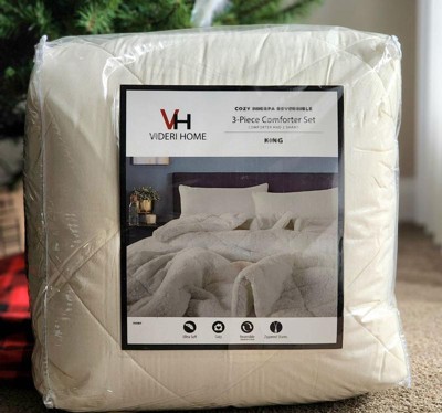 [This review was collected as part of a promotion.] Soft ivory color, reversible, and accurate sizing with shams included? I love it! It's a cold day out and immediately I bundled up in this cute set. I love that I can choose between sherpa or not and that it fits my bed perfectly for this holiday season while being incredibly comfortable. Plus, the zippered shams are definitely an added perk. 👌