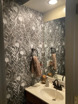 This RoomMates dandelion wallpaper pattern is so forgiving and easy to align and apply so you don't see any seams! We chose the taupe color and it is so pretty!