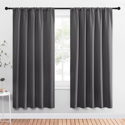 Classic Modern Solid Room Darkening Light Filtering Curtains, Grommets, Set of 2, 52"x72", Grey - Blue Nile Mills