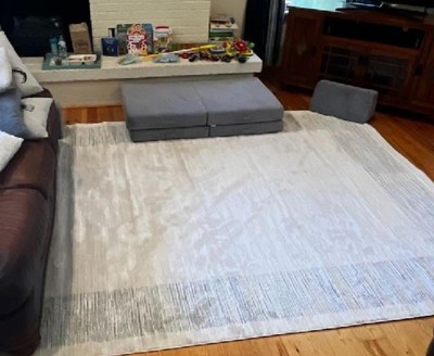 Love this rug! I recently purchased this rug and absolutely love it! I was looking for a new modern rug to update my dining room and this rug was perfect. Very nice quality and love the way it brightens my dining room. Color is nice and versatile and looks great against my light floors and dark wood furniture. Perfect weight and not too thick.