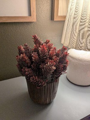 Northlight Wild Flower Artificial Plant in a Textured Lined Pot - 8" - Burgundy Red