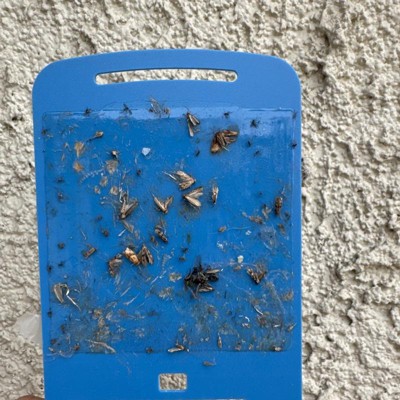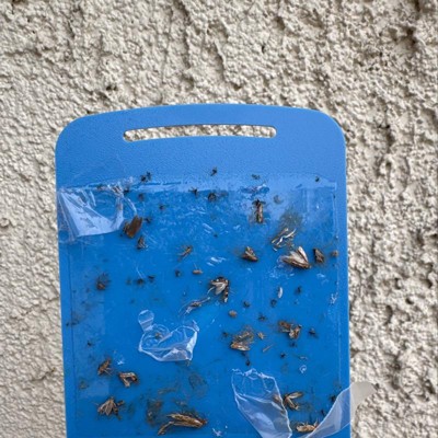 Lasts forever and grabs all the pesky gnats and moths. Pictures are front and back and this has been on for more than a month and the stickiness still holds.