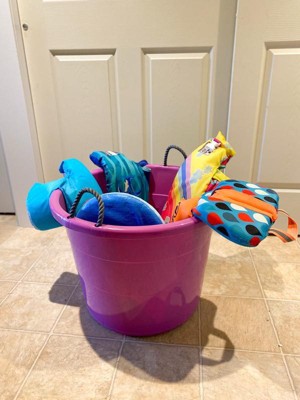 [This review was collected as part of a promotion.] I’m impressed with the size and sturdiness of these storage buckets. We are using them to store our kids’ swim toys and gear plus a lot of our outdoor toys. The handles are very strong and I can tell will last over time. The buckets are easy to transport and store inside the house or in the garage.