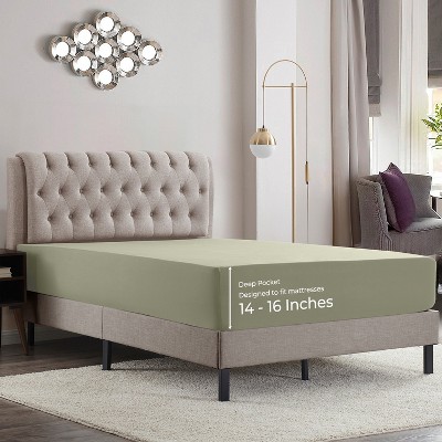Empyrean Extra Deep Pocket Single Fitted Sheet, Ultra Soft Twin Fitted Sheet - Sage Green