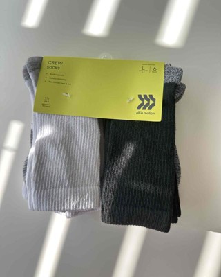 Bring comfort and breathability to your child's sock drawer with the Kids' 6-Pack Crew Socks from All in Motion™. Made from mid-weight fabric, the pack of 6 socks offer a soft and stretchy feel for daily use. It features a crew height style suitable for various activities and shoe styles. With cushioned heel and toe areas, the kids' crew socks from All in Motion™ provide optimal comfort and ensure your child's feet are protected throughout the week.
