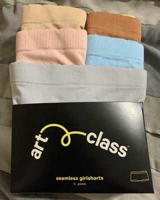 Add comfort to your little one’s underwear collection with the Girls' 5pk Seamless Boyshorts Scallop Waistband Underwear from art class™. This pack of 5 boy shorts include an assortment of solid colors for daily wear. The set features a seamless construction for a smooth silhouette under clothing and a scallop waistband. Designed with a mid-rise fit and pull-on closure, the girls' seamless boyshorts scallop waistband underwear from art class™ ensures easy wear and a secure fit.