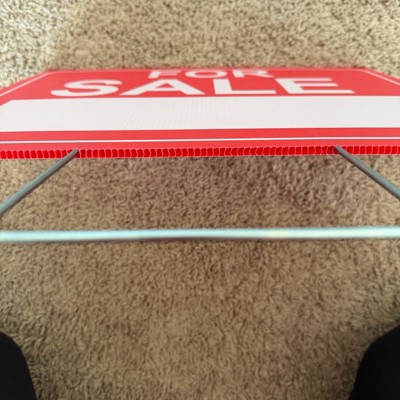 It is what it is - a plastic for sale sign to announce to all around that something is for sale. It was very easy to put together (place the metal piece through the bottom of the sign). It was also easy to stick in the ground and I’m happy to report that it stays put well! I appreciate the bright red color! It will help attract buyers to your sale! I bought this to help my little entrepreneur at home!