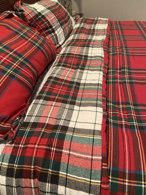 [This review was collected as part of a promotion.] I am getting ready for the upcoming season with this double sided 100% cotton flannel comforter set. It is extremely soft and cozy. It is perfect for everyday as well as the holiday season. The plaid is red on one side and white plaid on the other side. It arrives packaged in a duffle bag made of the same flannel. It can be washed in the machine but I would certainly use the gentle cycle with cold water to preserve its rich bold color. Levtex Home has made a quality product that keeps me warm at night!