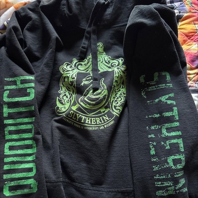 - CUSTOM ARTWORK - The graphic print on this Harry Potter hooded sweatshirt displays custom artwork of House Slytherin?s coat of arms and a text design down both sleeves