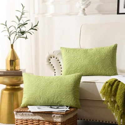 Unique Bargains Velvet Modern Solid Couch Sofa Home Decorative Pillow Covers Green 12" x 20" 2 Pcs