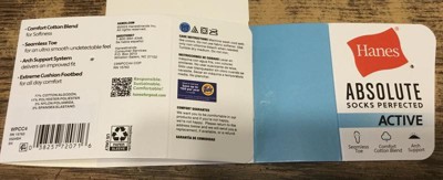ABSOLUTELY OUR VERY BEST SOCKS Built with our very best fabric, Hanes Absolute™ Crew Socks are crafted from a comfort cotton blend that offers both exceptional softness and enhanced durability. Arch support and deep heel pocket create a hug-for-your-foot fit, and our extreme cushion footbed is soft and thick and outrageously comfortable. A seamless toe helps reduce friction and irritation, while the wicking fabric keeps you cool and comfy throughout the day. You’ll love the cute designs in versatile socks that you may not want to cover up with a sneaker. The best part? This four-pack of exceptional socks offers unbeatable quality at an impressive price point. Hanes Absolute. Because your comfort shouldn’t compromise your budget.
