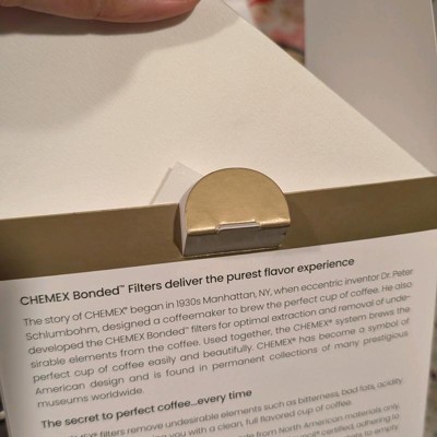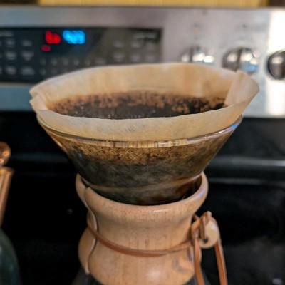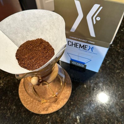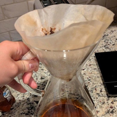 I really love my chemex. I've been using the largest one for a long time now. So having it so long, I have tried lots of filters. I tried a lot of cheap knockoff ones initially out of convenience and budget, but I found the name brand ones are just so far superior. So I only buy the name brand from Target. I gave this four stars because I just don't really like the round top. I have had it curled down as I poured in the hot water and the folded square really just is better.