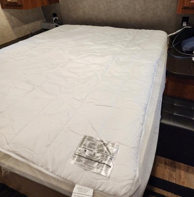 [This review was collected as part of a promotion.] I have been a fan of Sunbeam products for years. Their quality and attention to detail is outstanding. We put this mattress pad on our camper bed. Stretches easily over the mattress and covers corner to corner. When the temperatures dip below 40, it provides a perfect layer of warmth and combats the cool air from the storage compartments below. Love the selectable heat level and time settings, but I took it down one star because the controller is too bright in the dark room all night. I have another version at home and the controller light shuts off after a few moments.