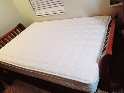 [This review was collected as part of a promotion.] My twins still like to sleep in the same bed together, but they’ve both been dealing with a mattress that was definitely way less comfortable, and supportive, than it should have been. Even with a mattress pad on their old bed it just wasn’t cutting it like it should have been. Needless to say they were so excited when I told them that I’d gotten this mattress for them. When it came in the mail I was initially really confused because it came in a super tall, heavy, thinner box; which I wasn’t expecting with a spring mattress. It was actually pretty easy to unpack and set up, though. Once you safely remove the outer plastic there is an inner plastic wrapped area containing the actual mattress. Be careful when you’re opening it, and make sure you have plenty of room where you’re at, because it puffs up super fast. It said that it could take up to 48 hours to be fully at its normal size, but it seemed like it took quite a bit less time than that for me. The mattress itself seems to be of a really decent quality, and it has a nice, plush pillow top that makes it comfortable yet supportive. My kids have been raving about how comfortable their new bed is, and how well they’re sleeping now. I bought my mattress about 10 years ago for almost 4 times the cost of this mattress, and I would say that they’re really close to being the same quality. I definitely recommend this mattress!