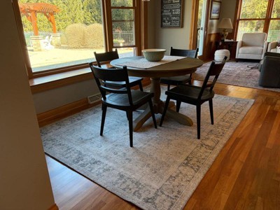 [This review was collected as part of a promotion.] I absolutely love this rug! I was worried when I first laid it out that it would stay curled on the corners, but it settled nicely. It’s very easy to clean but the only thing is it collects hair quite quickly so I’ll vacuum it a couple times a week. Not the worst thing in the world! I love the color and style of it. I would completely recommend this rug!!