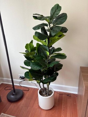 Forever Leaf 48" Artificial Fiddle Leaf Fig Tree with White Base Pot, Indoor Artificial Plant for Home Decor
