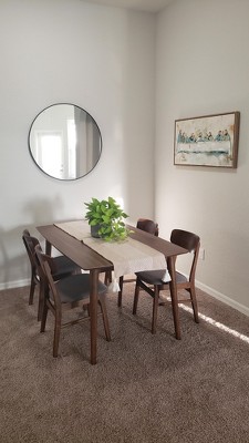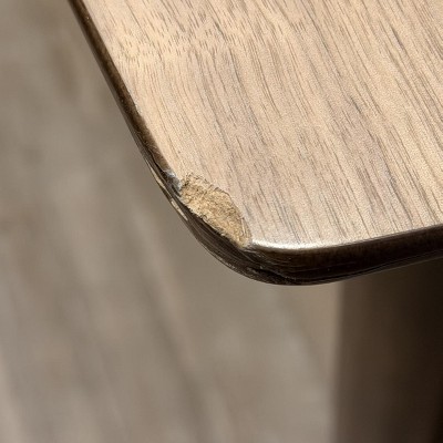 The dining set has a beautiful appearance and fits very well with a modern, mid‑century style. However, the materials feel somewhat light, and I encountered a design issue during assembly. When attaching the backrests of the chairs, one of the screws pushed through and left a visible mark on the opposite side of the backrest. This was disappointing and suggests a flaw in the design or material thickness. Overall, the set looks great, but the build quality could definitely be improved.