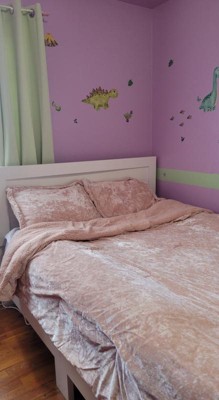 [This review was collected as part of a promotion.] I got this lovely crushed velvet sherpa comforter set for my daughter, and she is in love with it! She loves the fact that it is reversible, and both sides are super soft and pretty. The color is a really nice soft blush pink. It is very pretty and seems to be made very well.