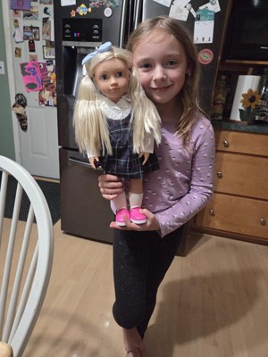 Per my granddaughter she loves Evie so much that Evie feels like a daughter to her. She loves her hair do and her school clothes.