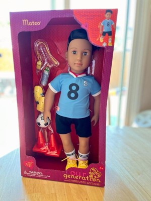 Our Generation Mateo Posable 18" Boy Doll in Soccer Uniform with Accessories