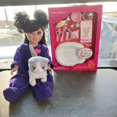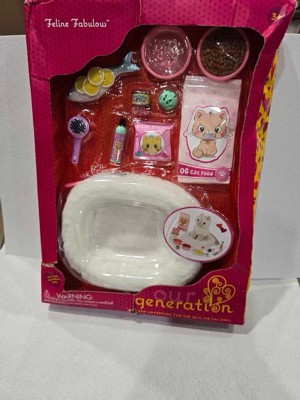 - Plush Pet Bed & Care Set: The Our Generation Feline Fabulous set for 18-inch dolls has everything animal fans need to take purrfect care of their favorite kitty!