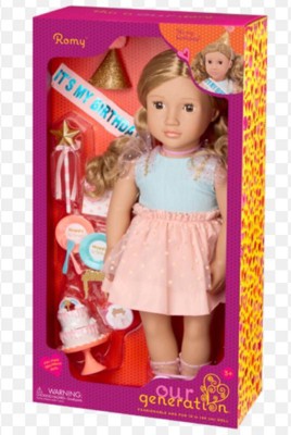 [This review was collected as part of a promotion.] My daughter owns a few Our Generation dolls and she absolutely loves them. Romy doll is gorgeous and comes with birthday accessories. They are very well made and are very interactive. The doll has soft body and rubber arms and legs. The eyes can open and close. This is definitely a doll every little girl would love to play with.