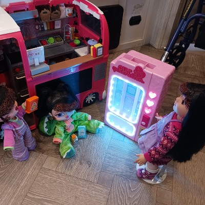 I KNEW AS I SAW THIS PLAYSET I JUST HAD TO HAVE IT IT'S ABSOLUTELY GORGEOUS! I DIDN'T REALIZE IT HAD ALL OF THOSE PRETTY LITTLE DESIGNS ON IT. THE CUTE LITTLE TEDDYBEARS, CANDY ETC. AN THE MACHINE WORKS JUST GREAT! I LOVE IT! YOU CAN OPEN THE CANDY/ CHIPS THAT IS SUCH A KOOL FEATURE. AN I LIKE HOW YOU CAN RETRIEVE THE COINS THE LIGHTS ARE SO PRETTY MY GROWN KIDS WAS EVEN IMPRESSED BY IT. AN ANOTHER AWESOME THING IS IT GOES GREAT WITH MY OG FOOD TRUCK FOR DOUBLE THE FUN! OG MAKES SUCH GREAT AWESOME AFFORDABLE PRODUCTS IM TELLING YOU! I AM SO HAPPY TO ADD THIS TO MY COLLECTION! GREAT PRODUCT, GREAT PRICE, AN FAST FREE SHIPPING THANKS 😊