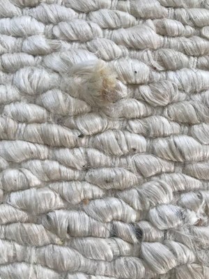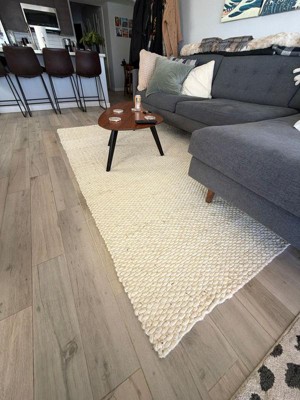 [This review was collected as part of a promotion.] This is a very casual rug. It has many flaws, discolored areas, many pieces of rope sticking out. It isn’t quite the look I was going for but I’ve decided to keep it....for now. It is soft underfoot and my cats like it. I don’t recommend this unless you want a very casual look and are okay with the multitude of flaws.