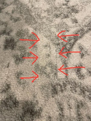 [This review was collected as part of a promotion.] The chemical smell has not gone away and it’s almost a month of it being out. Half the rug has fibers laying opposite direction making half look darker than the other half. Random teal and pink fibers popping through even though the rug is white and gray! I’ve purchased 2 other rugs in the past from here and loved them. This one is not the same quality. Could have spent half the price buying from a local box store.