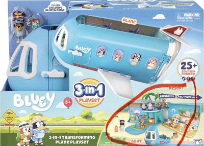Bluey 3-in-1 Airplane Playset: Sound Effects & Multiple Activities, Includes Figures, Educational Creative Thinking
