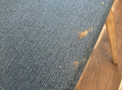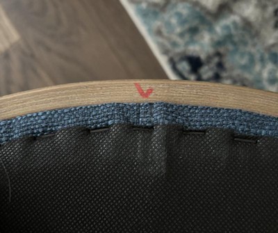 Color and seat are exactly as pictured in description. Comfortable chairs with birch colored legs that have a pretty blue cushion. I received one set of chairs that appeared to have been returned. There was a red mark on the underside of one chair. But I still give 5 stars because it cleaned up and I’m very pleased.