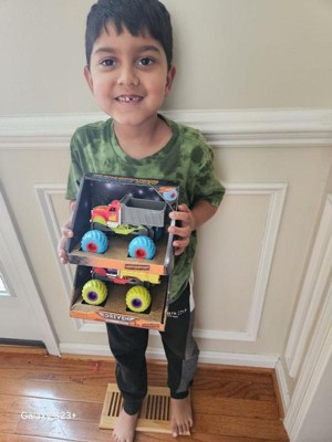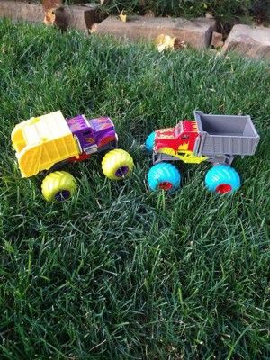 [This review was collected as part of a promotion.] These monster trucks were nice, my son played with them but he said he liked the regular Monster truck(Monster Jam) better. They are durable and colorful. Different to make work trucks into monster style. I would recommend for smaller kids.