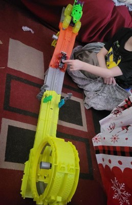 [This review was collected as part of a promotion.] This is a great track The kids love to play with us easy to set up, easy to play with and easy to keep together that’s important, but yeah, the kids loved playing with the cars. The track was bright and colorful.