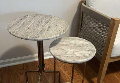 While browsing through the Hearth and Hand section, I came across this table and instantly fell in love with it! Right into my cart it went. It's a lovely accent table. Beautiful design. Between the marbled table top and brass legs it looks high end. I am really happy with my purchase!