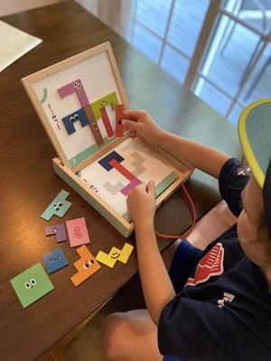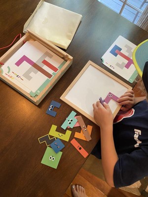 This Magnetic Wooden Puzzle Pattern game is so fun for my five year old twins. They love that some of the cards are a challenge. They are so proud of themselves when they complete a puzzle correctly. I love that it is all self contained with no loose pieces.