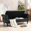 The perfect upholstered flip-top storage bench that's both stylish and functional. Featuring rolled arms, lovely button tufting, nailhead accents, and soft pressure hinges, this ottoman is the ideal addition to any interior space. Not only does it provide ample storage space, it also provides you with a comfortable bench.