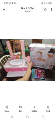 - PRETEND SELF CARE VANITY: Dive into a world of glamour and self-care with the Deluxe Day Spa vanity featuring a working sink and play skincare tools including play facial steamer, 2 pretend face masks, a spa headband, pretend cleanser bottle, wash cloth, and more