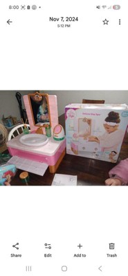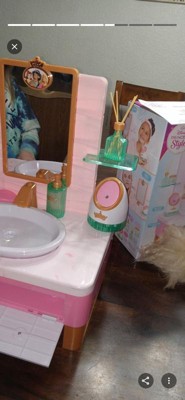 Relax, Refresh, & Renew with the Disney Princess Style Collection Deluxe Day Spa vanity. Features a real working sink and a pretend facial steamer along with the latest play contemporary skincare essentials. With the push of a button, turn on the real working sink with running water. Wash & pretend to “steam” your face with the realistic facial steamer, refresh with a play mask, and unwind in style! Up your self-care game with the spa headband, pretend cleanser bottle, play facial pads, wash cloth and more! Conveniently stash everything in the storage drawer for easy clean up. Play for hours and dive into a world of glamour and self-care with the Deluxe Day Spa!