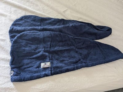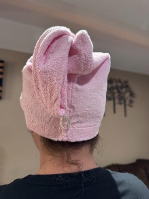 After Shower: Simply wrap the towel around your wet hair, twist it, and secure it with the button tie.