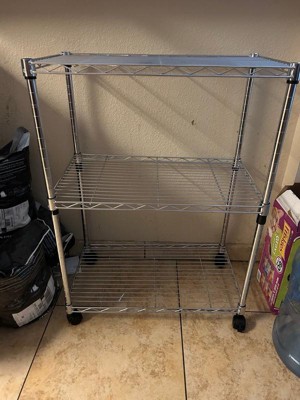 IRIS USA 3 Tier Metal Shelf Storage Rack with Removable Casters, Silver