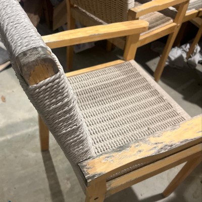 Costway Patio Chair Set of 2/4 Rubber Wood Dining Armchairs Paper Rope Woven Seat Balcony