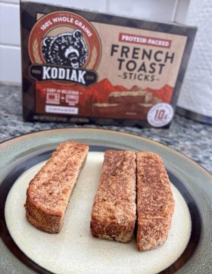 [This review was collected as part of a promotion.] I bought this complimentary of Influenster for my honest review. The Kodiak cinnamon French toast sticks were not my favorite. There is plenty of cinnamon flavor, and baked it with the oven instructions, but it still came out pretty dry. Adding maple syrup will definitely help with that. There is 10 g of protein per serving and has great ingredients, 100 percent whole grains. All in all, this is a good, convenient protein packed breakfast.